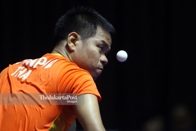 Atlet tenis meja Thailand Pupoo Chalermpong ketika menghadapi petenis meja China Yan Shuo babak final tunggal putra TT-7 Asian Para Games 2018 di Ecovention Ancol Jakarta, Senin (8/10/2018). (FOTO/INAPGOC/Dwi Prasetyo)