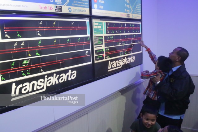 Direktur Utama PT Transportasi Jakarta (Transjakarta) Agung Wicaksono menunjukkan Command Center Transjakarta kepada siswa Sampoerna Academy saat kunjungan ka kantor pusat Transjakarta, Cawang, Jakarta, Selasa, 25/6/2019. Acara tersebut memberikan edukasi kepada siswa untuk mengenal, mempelajari sistem transportasi dan mencintai moda transportasu terbesar di Jakarta tersebut. - JP/Wendra Ajistyatama/vja/19