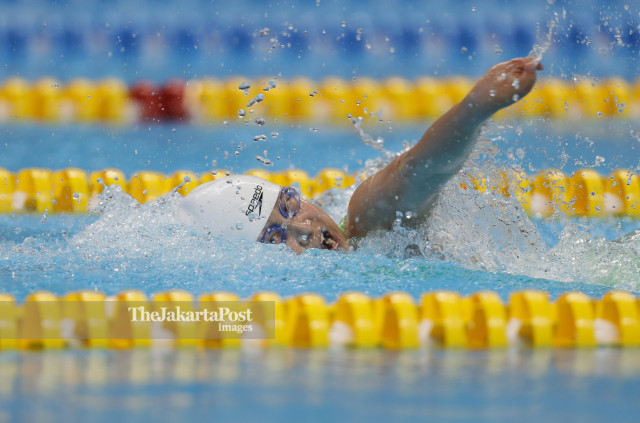 Chen Yi pada final 100m Freestyle S10 putri Asian Paragames 2018 di Stadion Akuatik, Senayan, Jakarta, Senin (8/9/2018). (INAPGOC/ TJP Images / Herka Yanis Pangaribowo/Don/18)