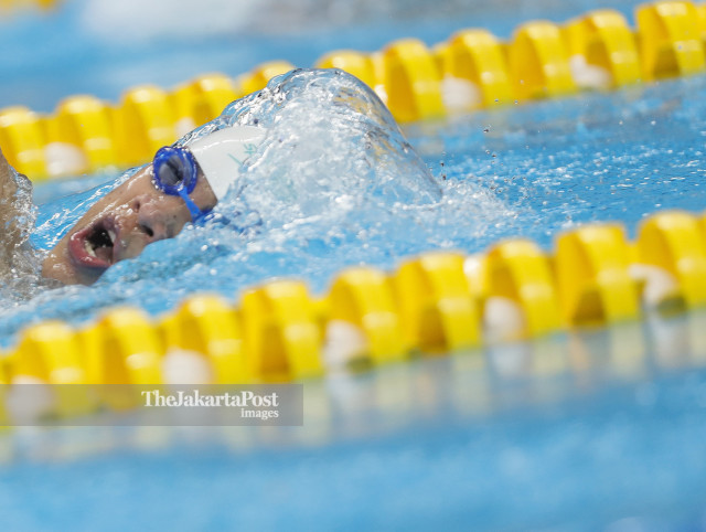 Xu Haijiao pada final 400m Freestyle S8 putra Asian Paragames 2018 di Stadion Akuatik, Senayan, Jakarta, Senin (8/9/2018). (INAPGOC/ TJP Images / Herka Yanis Pangaribowo/Don/18)