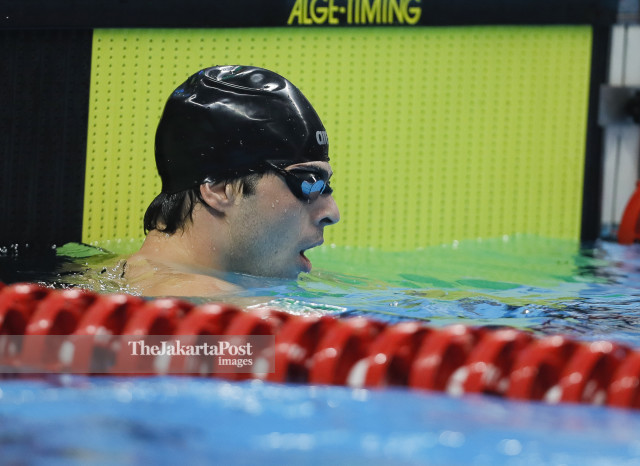 Islam Aslanov pada final 100m Freestyle S13 putra Asian Paragames 2018 di Stadion Akuatik, Senayan, Jakarta, Senin (8/9/2018). (INAPGOC/ TJP Images / Herka Yanis Pangaribowo)
