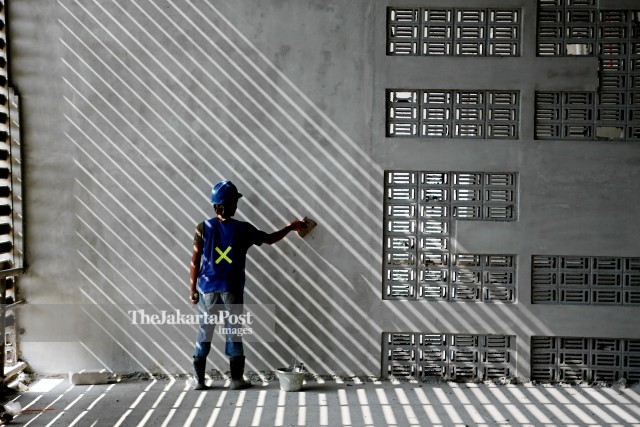 Workers finish the construction of Gelora Bung Karno Stadium in Senayan, Jakarta, Friday, March 17, 2017. The stadium will be used for the upcoming 2018 Asian Games and expected to be finished on October 2017. - JP/Seto Wardhana/Adi/19