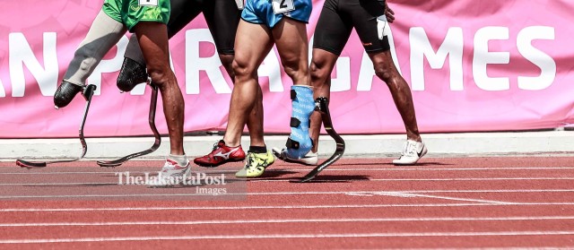 Para pelari dari berbagai negara saat bertanding pada Asian Para Games di Gelora Bung Karno Senayan Jakarta, Selasa (10/09). INAPGOC/TJP Images/Fernando Randy/Don/18