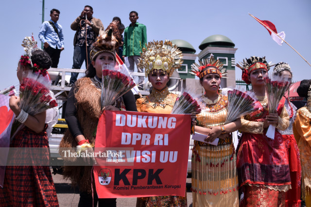 Democracy Enforcement Society and a number of students demonstrated to support the revision of the KPK Law in front of the DPR / MPR RI Building, Central Jakarta (10/09). The demonstrators assumed that the Revision of the KPK Law actually strengthened the performance of the KPK, especially with the discourse of the formation of a Supervisory Board. - JP / Anggie Angela / Adi / 19