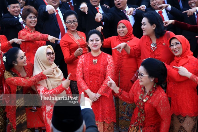 Indonesian House of Representatives members from the PDI-Perjuangan faction take photos while heading towards Puan Maharani at the DPR building, Senayan, Jakarta, Tuesday, October 1, 2019. PDIP who won the most votes in the 2019 election Appoints Puan as Chair of the DPR RI 2019-2024 period. -JP / Seto Wardhana / Adi / 19