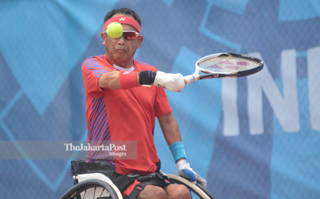 Jakarta, 10 Oktober 2018 MITSUTERU MOROISHI (JEPANG) Babak Semi Final Quad Tunggal Tenis Kursi Roda Asian Para Games 2018 Lapangan Tenis Klub Kelapa Gading Jakarta Rabu (10/10)