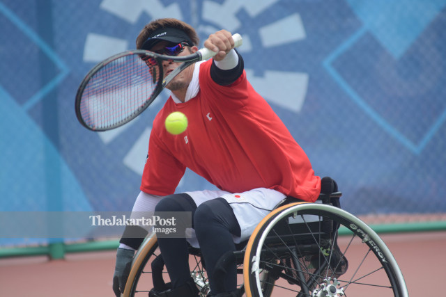 Jakarta, 10 Oktober 2018 KOJI SUGENO (JEPANG) Babak Semi Final Quad Tunggal Tenis Kursi Roda Asian Para Games 2018 Lapangan Tenis Klub Kelapa Gading Jakarta Rabu (10/10)