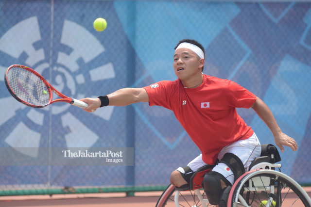 Jakarta, 10 Oktober 2018 SHOTA KAWANO (JEPANG) Babak Semi Final Tenis Kursi Roda Asian Para Games 2018 Lapangan Tenis Klub Kelapa Gading Jakarta Rabu (10/10)/INAPGOC/Dwi ary Setyadi
