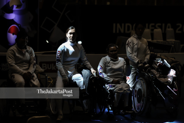 Para Atlit perempuan Wheelchair Fencing dari berbagai negara bersiap mengikuti pertandingan