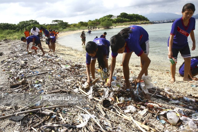 Students picked garbage around the coast of Menjangan Island during a 'beach and underwater clean up' event on Saturday involving 180 students. The small island, famous as a diving and snorkeling spot in Bali, is facing garbage problems. In 2011 file picture- JP/Stanny Angga/Adi/19