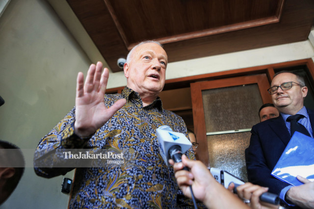 The Australian Ambassador to Indonesia, Gary Quinlan, answered reporters' questions after a meeting with the Coordinating Minister for Politics, Law and Security Mahfud MD in Jakarta. Tuesday, October 29, 2019. The meeting discussed issues of political and security issues between the two countries. - JP / Seto Wardhana / Adi / 19
