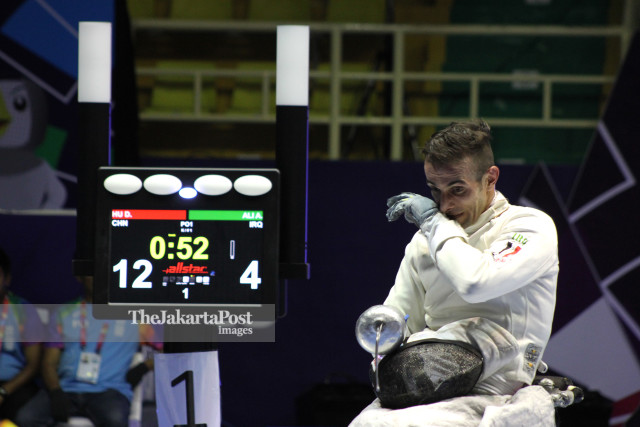 Atlit Anggar Kursi Roda Iraq Ali Ammar terlihat kelelahan