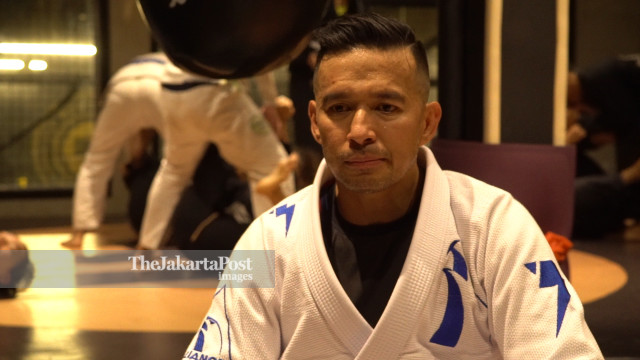 Braziian Jiu Jitsu (BJJ) Deddy Wigraha trains his apprentices at Fit Force, Kemang, South Jakarta, on Friday, September 27, 2019. Brazilian Jiu Jitsu is a martial art and combat sport system that focuses on grappling with particular emphasis on ground fighting. - JP/Donny Fernando/Adi/19