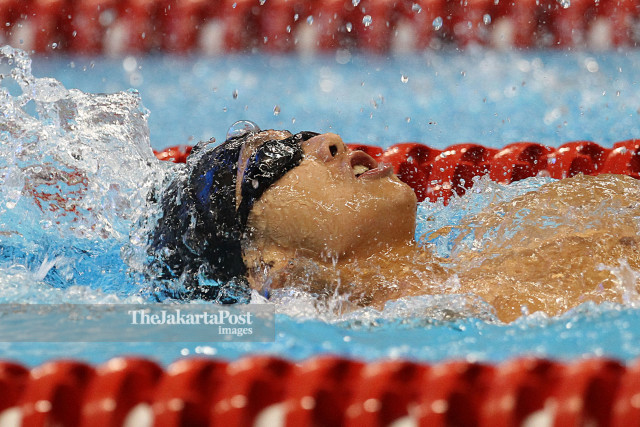 Atlet renang difabel Jepang, Ejima Daisuke meraih emas dalam babak final100M gaya punggung S7 putra pada Asian Para Games 2018 di Aquatic Center, Gelora Bung Karno, Jakarta, 10 Oktober 2018. INAPGOC/Feri Setiawan