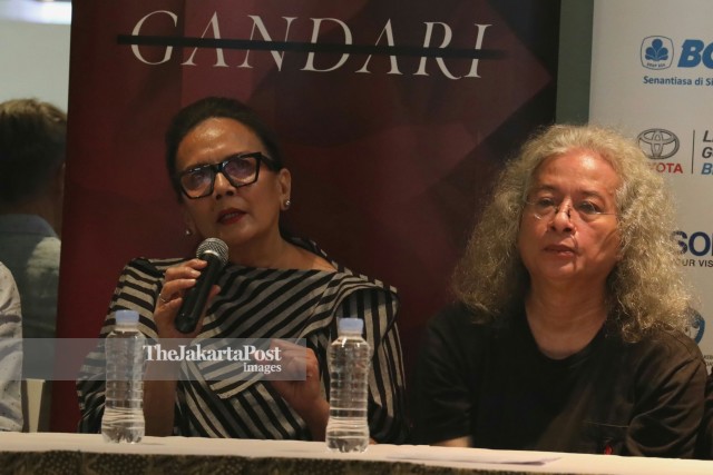 Christine Hakim, a regional artist in Indonesia, played the role of narrator (left) explaining the figure of Gandari at a press conference at the Taman Taman E3.3 Mega Kuningan Office, South Jakarta (5/12/19). Opera Gandari invites the audience to see Gandari as a symbol of human character that is confronted with his life and destiny. - JP / Dionnasius Aditya / Adi / 19