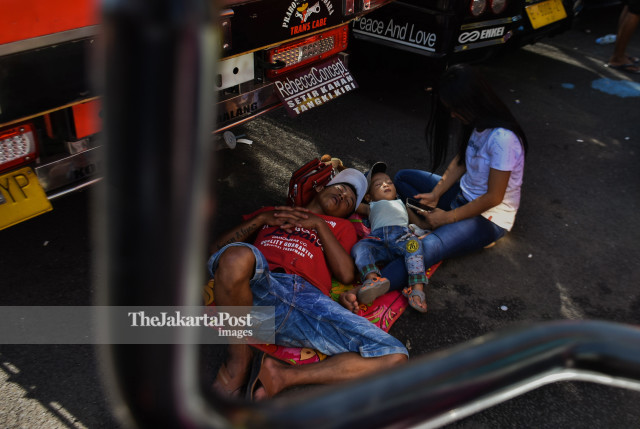 Seorang sopir bersama anak dan istrinya tertidur dibawah bak truk, saat kegiatan Kopdar (kopi darat) ke-3 komunitas pecinta truk di Stadion Kanjuruhan Malang, Jawa Timur, Minggu (8/12/2019). kegiatan tersebut bertema "Kumpul Boleh Oleng Jangan" diikuti pemilik, sopir, kernet, juragan cabe dan komunitas pecinta truk dari berbagai daerah di Jawa Timur. Untuk meningkatkan silaturahmi dan edukasi tertib berlalu lintas di jalanan. -JP/Aman Rochman/Adi/19