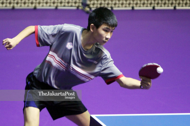 Atlet tenis meja China Taipei Su Jin Sian ketika menghadapi petenis meja Jepang Nagashita Naoya pada babak round robin beregu putra TT 9-10 Asian Para Games 2018 di Ecovention Ancol Jakarta, Kamis (11/10/2018). (FOTO/INAPGOC/Dwi Prasetyo)