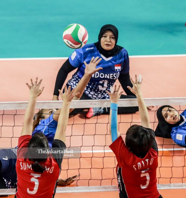 Suasana pertandingan perebutan medali perunggu antara tim voli duduk putri Indonesia menghadapi Jepang pada Asian Para Games di Tennis Indoor Jakarta, Kamis (11/10/2018). INAPGOC/TJP Images/Fernando Randy